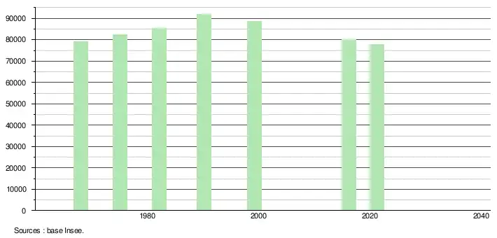 Elle appartient à l'unité urbaine de Cherbourg-en-Cotentin, une agglomération intra-départementale regroupant trois communes[41] et 81 989 habitants en 2017, dont elle est ville-centre[42],[43].