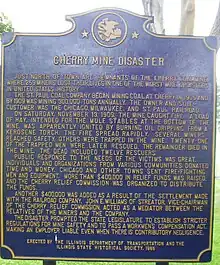 Le , un incendie provoque une catastrophe dans la mine de Cherry, occasionnant la mort de 259 personnes[3].