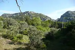 L'occupation des sols de la commune, telle qu'elle ressort de la base de données européenne d’occupation biophysique des sols Corine Land Cover (CLC), est marquée par l'importance des forêts et milieux semi-naturels (72,4 % en 2018), une proportion sensiblement équivalente à celle de 1990 (70,5 %). La répartition détaillée en 2018 est la suivante : milieux à végétation arbustive et/ou herbacée (43,4 %), forêts (16 %), espaces ouverts, sans ou avec peu de végétation (13 %), zones agricoles hétérogènes (11,1 %), cultures permanentes (9 %), prairies (2,4 %), zones urbanisées (2,3 %), zones industrielles ou commerciales et réseaux de communication (1,3 %), eaux continentales[Note 4] (0,9 %), espaces verts artificialisés, non agricoles (0,5 %)[20]. L'évolution de l’occupation des sols de la commune et de ses infrastructures peut être observée sur les différentes représentations cartographiques du territoire : la carte de Cassini (XVIIIe siècle), la carte d'état-major (1820-1866) et les cartes ou photos aériennes de l'IGN pour la période actuelle (1950 à aujourd'hui)[Carte 1].