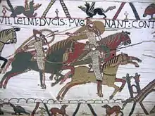 Les représentations artistiques du cheval de guerre figurent généralement ce dernier très petit par rapport à son cavalier. Sur la tapisserie de Bayeux, par exemple, les pieds du cavalier arrivent à la hauteur du pli du genou du cheval[77].