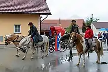 Le jour de la fête de la Saint-Étienne, les éleveurs de chevaux entament des pèlerinages liés à leurs animaux. Les chevaux sont bénis dans de nombreux lieux saints en Slovénie, et les gens apportent des offrandes telles que des statuettes de chevaux ou de l'argent, aux églises. Cette coutume s'est perpétuée à Štepanja Vas (en), près de Ljubljana, et avait lieu autrefois dans de nombreux lieux en Slovénie, les croyants sacrifiant de petits chevaux en cire blanche[S 34]. Un rôle sacrificiel est attribué au cheval à cette date[S 34].