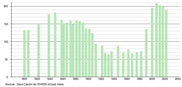 - Fiches Insee - Populations légales de la commune pour les années 2006, 2007, 2008, 2009, 2010, 2011, 2012, 2013, 2014, 2015, 2016, 2017, 2018, 2019, 2020 et 2021.