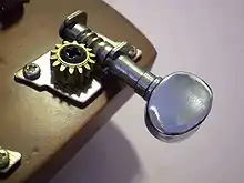 Le système de chevilles de la guitare classique (guitare espagnole, acoustique) rappelle directement celui de la contrebasse, avec des mécaniques qui n'agissent pas directement sur la corde (vis sans fin et cylindres d'ivoire ou de plastique).