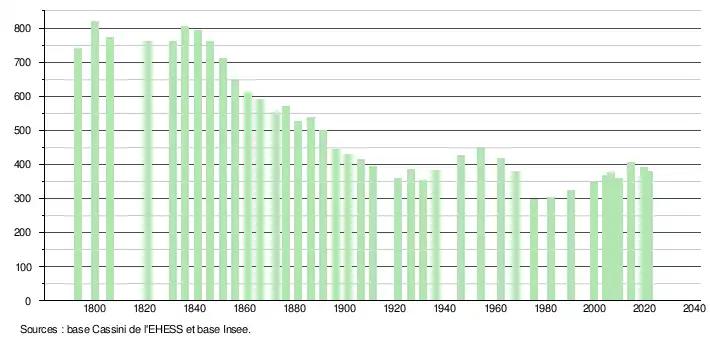 (Sources : Ldh/EHESS/Cassini jusqu'en 1999[22] puis Insee à partir de 2006[23].)
