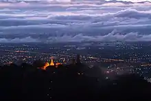 Temple de Doi Suthep à l'aube avec vue sur la ville de Chiang Mai
