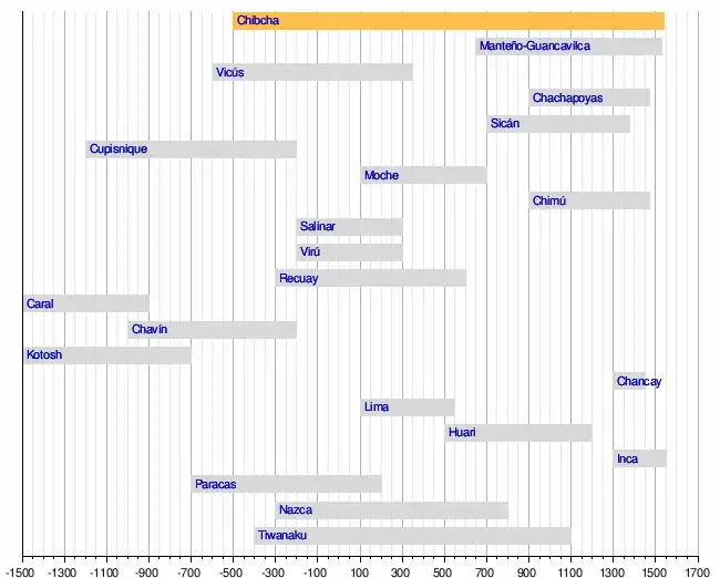 Les Chibchas ou Tchibtchas ou Muiscas sont une communauté précolombienne de l'actuelle Colombie, vivant autour de l'actuelle Bogota, conquise en 1536 par le conquistador Gonzalo Jiménez de Quesada, à la recherche de l'Eldorado.