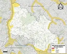 Le retrait-gonflement des sols argileux est susceptible d'engendrer des dommages importants aux bâtiments en cas d’alternance de périodes de sécheresse et de pluie. 9,1 % de la superficie communale est en aléa moyen ou fort (67,4 % au niveau départemental et 48,5 % au niveau national). Sur les 483 bâtiments dénombrés sur la commune en 2019, 43 sont en aléa moyen ou fort, soit 9 %, à comparer aux 81 % au niveau départemental et 54 % au niveau national. Une cartographie de l'exposition du territoire national au retrait gonflement des sols argileux est disponible sur le site du BRGM[21],[Carte 3].
