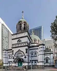 - Kudanminami (en) et Kudankita (en) : ces deux quartiers voisins sont souvent appelées par leur diminutif, « Kudan ». Ce sont des quartiers résidentiels bourgeois[9]. Ce sont également des quartiers d'affaires voisins d'Iidabashi qui abritent quelques sièges sociaux, la mairie de Chiyoda, le sanctuaire de Yasukuni et le centre des finances publiques de Tokyo[10]. On y trouve également des écoles de renom : Gyosei (ja)[11], Shirayuri (ja)[12].