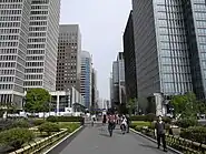 - Marunouchi : quartier d'affaires luxueux, c'est ici que la gare de Tokyo se situe. Il y a également des centres commerciaux, des boutiques et restaurants haut de gamme, le centre d'expositions Tokyo International Forum, l'hôtel de luxe Shangri-la Tokyo, le Palace Hôtel (en) et la Tokyo Station Hotel et le musée Mitsubishi Ichigokan.