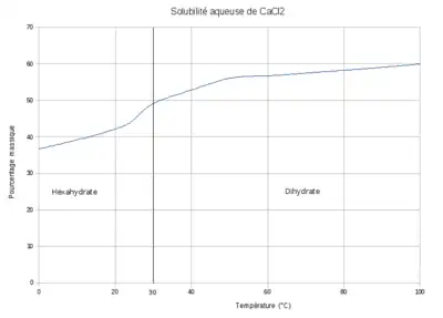 - > 96 % (CaCl2·0H2O sous forme de paillettes, pellets ou poudres - température de cristallisation > 180 °C).