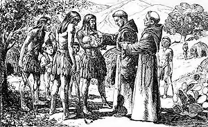 - Lippy, p. 47: "A matter of debate in reflecting on the role of Spanish missions concerns the degree to which the Spanish colonial regimes regarded the work of the priests as a legitimate religious enterprise and the degree to which it was viewed as a 'frontier institution,' part of a colonial defense program. That is, were Spanish motives based on a desire to promote conversion or on a desire to have religious missions serve as a buffer to protect the main colonial settlements and an aid in controlling the Indians?"