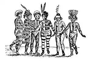 - Engelhardt 1922, p. 12: Not all of the native cultures responded with hostility to the Spaniards' presence; Engelhardt portrayed the natives at Mission San Juan Capistrano (dubbed the "Juaneño" by the missionaries), where there was never any instance of unrest, as being "uncommonly friendly and docile." Father Juan Crespí, who accompanied 1769 expedition, described the first encounter with the area's inhabitants: "They came unarmed and with a gentleness which has no name they brought their poor seeds to us as gifts...The locality itself and the docility of the Indians invited the establishment of a Mission for them."