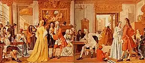 La France découvre le chocolat à Bayonne en 1615, à l'occasion du mariage d'Anne d'Autriche, fille du roi d'Espagne Philippe III, avec le roi de France Louis XIII[43],[39]. Mais c'est Louis XIV et son épouse Marie-Thérèse d'Autriche qui font entrer le chocolat dans les habitudes de la cour du château de Versailles, la reine se faisant préparer le chocolat « à l'espagnole » par ses servantes[49]. La boisson, servie uniquement à la cour du roi[50], est consommée chaude, comme le café. Elle reçoit un encouragement officiel de la part des médecins comme Nicolas de Blégny qui, après avoir jugé la boisson néfaste, en vantent les bienfaits[51]. La marquise de Sévigné, quant à elle, dit du chocolat dans ses Lettres qu’« il vous flatte pour un temps, et puis il vous allume tout d'un coup une fièvre continue »[50]. À partir de 1659, David Chaillou, premier « chocolatier » français reconnu par Mazarin, incorpore le chocolat à la pâte de ses gâteaux et biscuits[44].