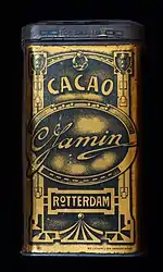 En 1821, l’Anglais Cadbury produit le premier chocolat noir à croquer[62]. Pour répondre aux besoins croissants de l'industrie, les cacaoyers sont introduits et plantés en Afrique[63]. Le chimiste Hollandais Van Houten réalise en 1828 la première poudre de cacao soluble, appelée pendant un temps « cacao hollandais »[55]. Grâce à une presse hydraulique de son invention, il réussit à durcir le beurre de cacao sous forme de pain qui peut ensuite être réduit en poudre[39]. Van Houten est le premier à inventer un procédé pour séparer le cacao maigre (ou tourteau) et le beurre de cacao, permettant aux industriels de doser les quantités relatives de cacao maigre et de beurre de cacao dans la pâte de cacao[64]. Le chocolat entre alors dans l'âge industriel. Van Houten, à partir de sa fabrique de chocolat d'Amsterdam, vendra ses boîtes de chocolat en poudre dans toute l'Europe[39].