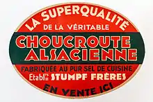 La choucroute [ ʃukʁut] (de l'allemand : das Sauerkraut [ˈzaʊ.ɐ.kʁaʊt] ; en alsacien : Sürkrüt) est un mets composé de chou coupé finement et transformé par lacto-fermentation dans une saumure, généralement accompagné de garniture.