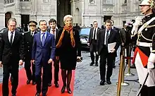Christine Lagarde prend ses fonctions le [86]. À la tête de la BCE, elle devrait maintenir la politique monétaire accommodante de son prédécesseur, Mario Draghi. Lors des échanges avec le Parlement européen précédant sa nomination, Christine Lagarde a également exprimé sa volonté de faire participer la BCE à la lutte contre le changement climatique[87],[88] et de réexaminer le cadre de la politique monétaire de la BCE[89]'[90].
