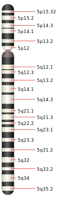 - Les maladies en rapport avec des anomalies génétiques localisées sur le chromosome 5 sont :