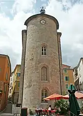 Appelée également tour-chapelle Saint-Blaise, sa construction date de la fin du XIIe s. Elle constitue le seul vestige de la commanderie d'Hyères. Transformé au cours des XVIIe et XVIIIe s., l'édifice devint successivement halle puis hôtel de ville. Il a été restauré et conserve sa physionomie d'origine : une chapelle à nef unique au rez-de-chaussée, une vaste salle à l'étage et une terrasse fortifiée.