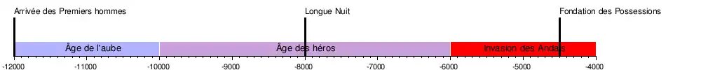 Deux mille ans après la Longue Nuit, les Andals envahissent Westeros après avoir franchi le Détroit (Narrow Sea) séparant Westeros d'Essos[1]. Leurs armes d'acier viennent aisément à bout de celles des Premiers Hommes, mais ils sont cependant incapables de s'emparer du Nord, en raison des défenses naturelles de la région. Les Andals amènent avec eux la religion des Sept, depuis répandue dans le Sud du continent, ainsi que la forge, le modèle féodal et la chevalerie. Ils importent aussi l'écriture et c'est à partir de cette époque que sont réellement écrites les histoires les plus anciennes du continent[R 3].