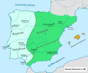 Cet article présente une chronologie des invasions barbares au Ve siècle dans la province romaine d'Hispanie (l'actuelle péninsule Ibérique), et des événements majeurs qui y sont liés.