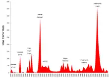 Chiffres d'après le gouvernement israélien[3] et selon Jewish Virtual Library[4] : 1 434 personnes ont été tuées par la violence et le terrorisme palestiniens depuis septembre 2000. Ne sont pas répertoriés les soldats de Tsahal tués lors des opérations militaires israéliennes.