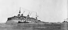 Le cuirassé français Gaulois chavire et sombre après son torpillage