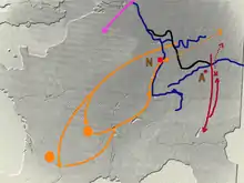 ![]() Fort de Kapersburg avec la phase de réduction de l'époque du limes tardif (h. dr.) |