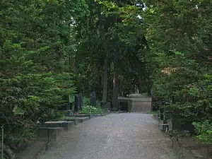 Un cimetière est un groupement de sépultures parfois attenant à un lieu de culte. Espace funéraire qui apparaît au Moyen Âge, il se distingue du champ funéraire préhistorique qui n'abrite pas de monuments, et de la nécropole antique qui est nettement séparée des lieux de culte[1].