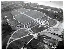 Le cimetière en a remplacé un premier provisoire, dit de Saint-Laurent, établi à proximité dès le . Premier cimetière militaire américain de la Seconde Guerre mondiale, il a été conçu par les architectes Harbeson, Hough, Livingston & Larson (cabinet d'architecte H2L2). L'architecte paysagiste est Markley Stevenson [5].