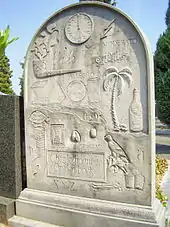 On trouve environ 350 monuments funéraires dans ce cimetière qui associent leurs stèles à un modèle de soufflet.