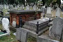 La tombe du romancier William Makepeace Thackeray (en marbre, à droite de celle en brique)