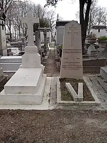 La loi de séparation des Églises et de l'État du n'a pas d'impact sur le cimetière du Père-Lachaise puisque les emblèmes religieux demeurent autorisés sur les monuments funéraires privés. La croix de cimetière a été enlevée en juin 1883[25].