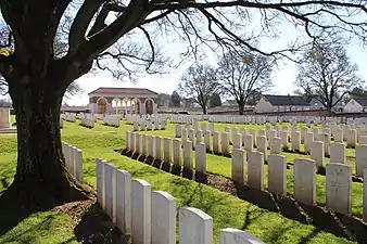 Le cimetière britannique est situé près du cimetière communal de Combles. Les dépouilles de 1 507 soldats y reposent parmi eux, 1 467 Britanniques, 22 Australiens, 11 Sud-Africains et 7 Canadiens[2].