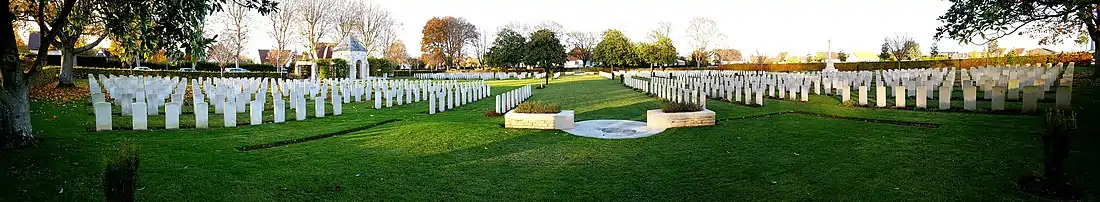 Le cimetière actuel a été conçu par l'architecte britannique Philip Dalton Hepworth (1890 – 1963). Ce dernier a conçu de nombreux cimetières et mémoriaux britanniques pour la Commonwealth War Graves Commission qui gère l'ensemble de ces monuments dans le monde entier.