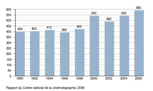 Après la Première Guerre mondiale, le cinéma prend une place considérable, supérieure au théâtre. Tous les quotidiens ont désormais une section destinée à la critique et des revues spécialisées sont créées, telles que Cinémagazine ou Cinémonde[75], ainsi, dans un monde plus universitaire que la Revue d'études cinématographiques (611 contributions en ligne en 2012 avec Persée[76]), spécialisée dans les études cinématographiques et la théorie et ou l'analyse de différentes approches, méthodes et disciplines (esthétique, sémiotique, histoire, communications, etc.) du domaine du cinéma.