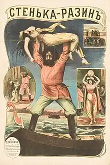 L'affiche originale de Stenka Razine, premier film russe, 1908.