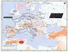 En Dalmatie, Marmont, sous le commandement nominal d'Eugène, combattit contre le général Stoichevich (de). Marmont lança une offensive dans les montagnes le 30 avril mais fut repoussé par les grenzers[33]. En dépit des revers initiaux, Marmont continua ses attaques et rejoignit Napoléon à Wagram.