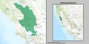 - (en) Cet article est partiellement ou en totalité issu de l’article de Wikipédia en anglais intitulé « California's 5th congressional district » (voir la liste des auteurs).
