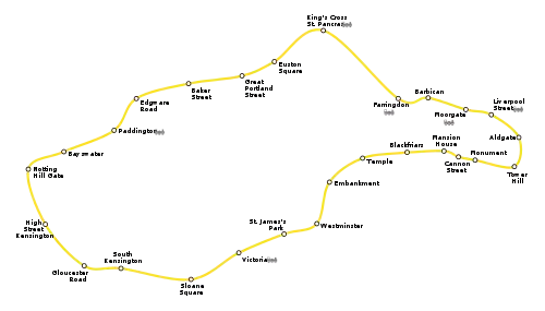 Elle forme une boucle autour du centre de Londres sur la rive nord de la Tamise avec, depuis le , une extension vers Hammersmith vers le nord-ouest. Elle relie entre elles la plupart des grandes gares londoniennes. La ligne est exploitée avec des rames de type S7 Stock.