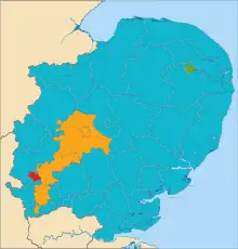 - (en) Cet article est partiellement ou en totalité issu de l’article de Wikipédia en anglais intitulé « East of England (European Parliament constituency) » (voir la liste des auteurs).