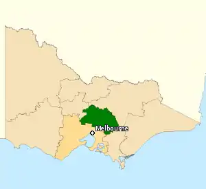 La circonscription de McEwen (en vert) dans la banlieue de Melbourne (en beige).