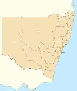 ![]() Circonscriptions électorales: reste de la Nouvelle-Galles du Sud |