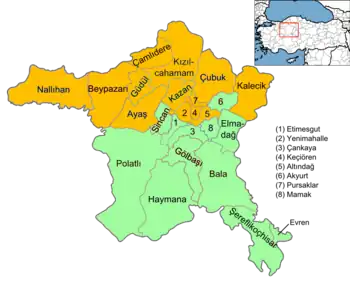Les circonscriptions électorales de la province d'Ankara sont un découpage constitué de trois secteurs (seçim çevresi) constitué de districts (ilçe). Istanbul, Ankara, Izmir et Bursa sont les quatre seules provinces de Turquie à avoir un découpage interne pour les élections législatives en raison de leur taille. Dans tous les autres cas, les circonscriptions électorales se font à l'échelle des provinces.