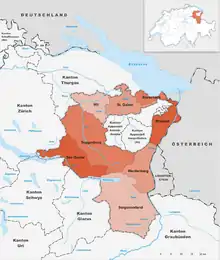 Depuis le , le canton de Saint-Gall n'est plus divisé en districts, mais en huit circonscriptions électorales (Wahlkreis en allemand) :