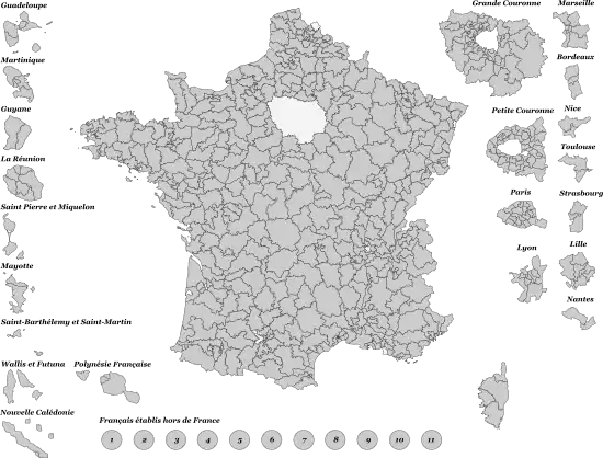 Les 577 circonscriptions législatives en vigueur depuis 2012.