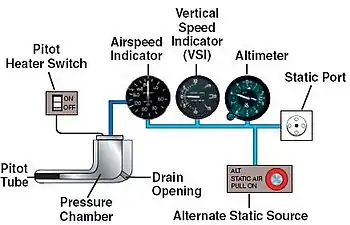 Il comprend un tube de Pitot, qui mesure la pression totale, et des prises statiques, pour la pression statique (ou une sonde combinée pitot-statique) ainsi que les instruments qui leur sont reliés, l'anémomètre, l'altimètre et le variomètre[1], parfois aussi un machmètre[2].
