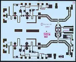 - (en) Cet article est partiellement ou en totalité issu de l’article de Wikipédia en anglais intitulé « Monolithic microwave integrated circuit » (voir la liste des auteurs).