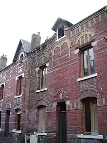 Chaque façade se différencie par son décor, avec un jeu de briques émaillées, jaunes ou blanches, disposées en figures géométriques au-dessus des fenêtres et des portes.