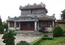 La bibliothèque royale (Thái Bình Lâu) est construite en 1887 par l'empereur (à l'époque de l'Indochine française, les autorités coloniales ne reconnaissaient que le titre de roi aux souverains de la dynastie Nguyen) Dong Khanh à l'emplacement d'un pavillon de lecture construit par Minh Mang en 1821. Elle est précédée d'un portique et les pans de sa toiture sont ornés de dragons. Devant la bibliothèque se trouve un jardin de rocailles. Les visiteurs peuvent aussi admirer un pavillon de mandarins près de la porte d'entrée, le seul qui subsiste d'autres pavillons de cette cour.