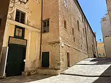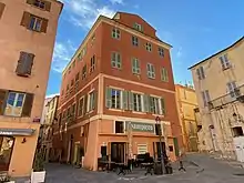 Il est situé Place du Donjon, anciennement appelée Piazza di Corte.